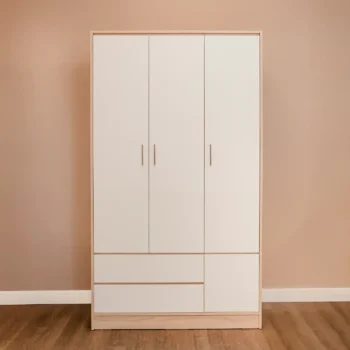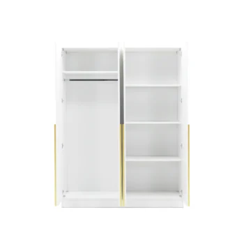 Experience the perfect blend of modern simplicity and high-end detail with this Lervi 4-Door Wardrobe – Golden Handle. Its clean, bright white finish is designed to open up your bedroom and create a peaceful, organized atmosphere.
